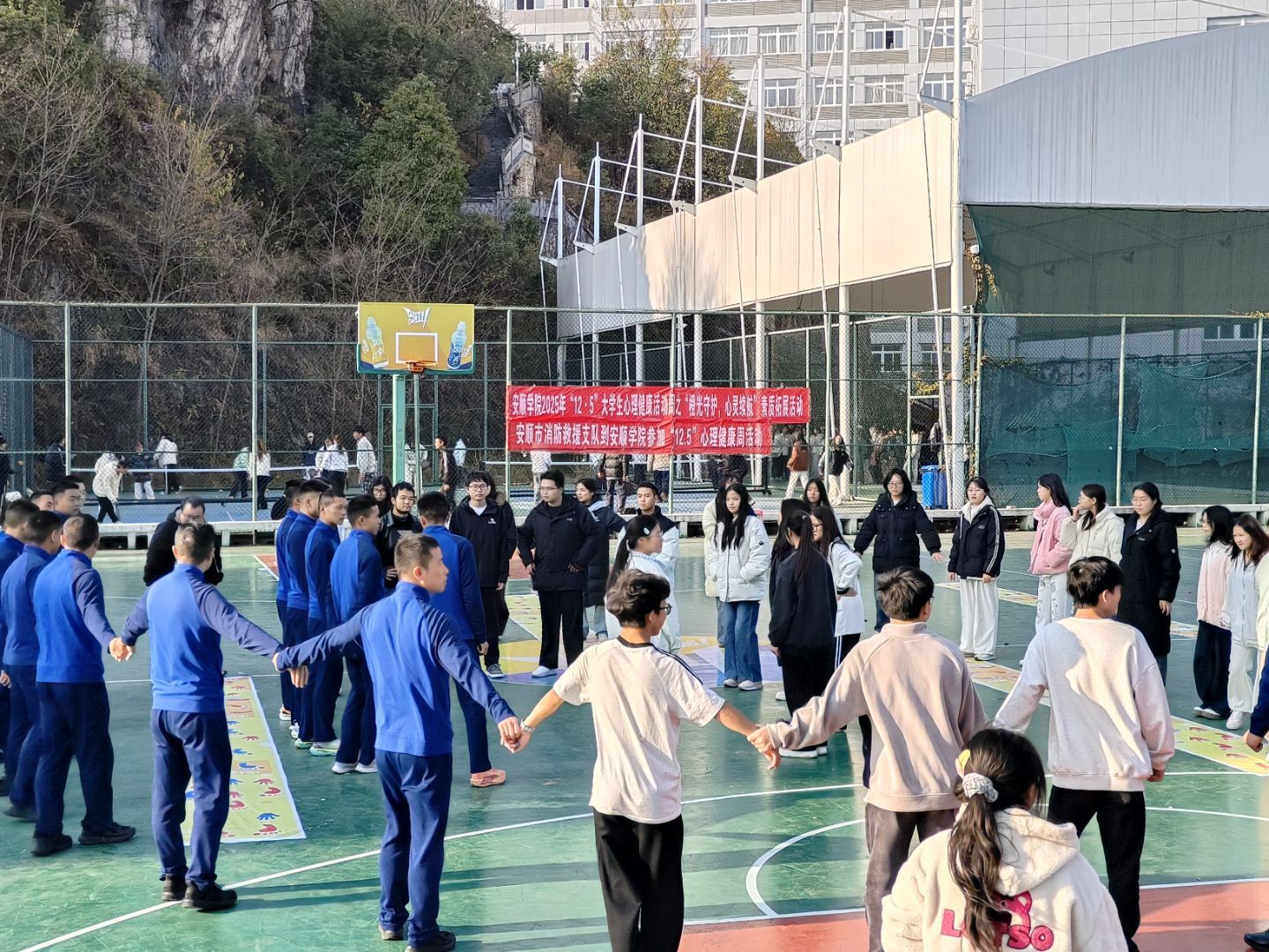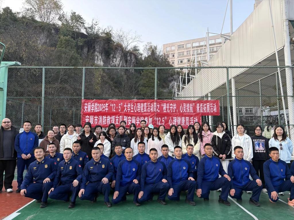 2025年12月1日,由安顺学院心理咨询中心主办,大学生心理健康协会承办的“12·5”大学生心理健康活动周之“橙光守护,心灵续航”素质拓展活动在篮球场圆满举行,安顺市消防救援队伍指战员代表与我校大学生代表共同参与活动。